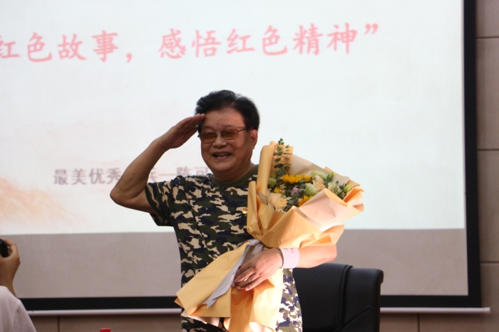 年轻报国志,戎马慰平生。一张张旧照片、一段段老故事,陈老先生生动的讲述,让在场的学生们无不深受触动,活动现场掌声不断。